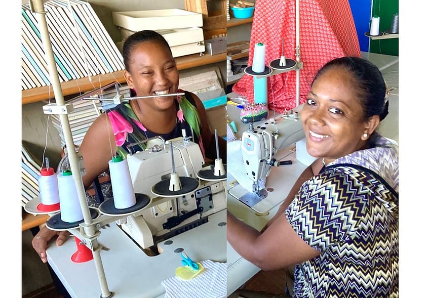 Hope House met Sarda and Priscilla in their community, where we set up sewing sessions under a tree. Beyond sewing, we built trust and confidence, leading them to join our sewing department in Bambous. They can now produce a variety of products successfully from job lot orders and support their families financially.